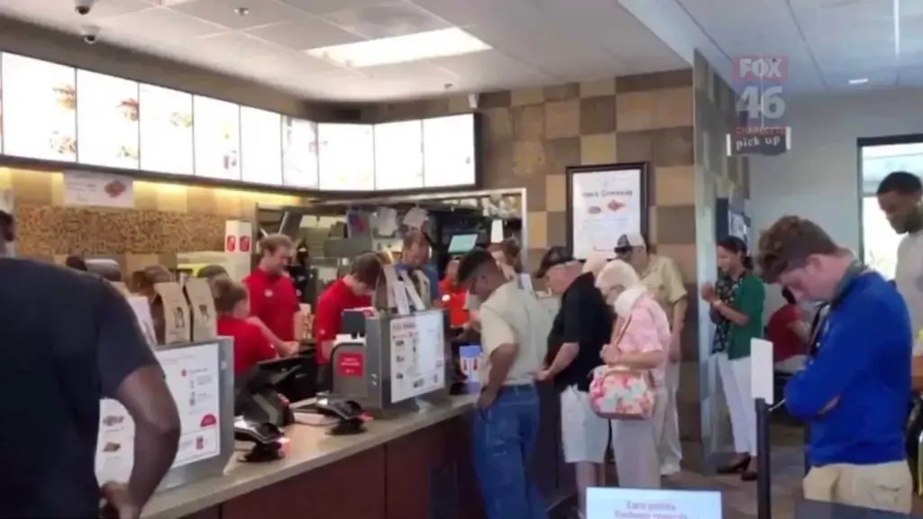 In the said viral video, both customers and employees alike are seen taking a moment to pray in a Chick-A-Fil outlet in North Carolina.