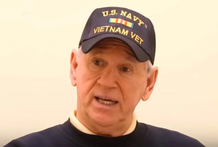 Lou makes a habit of wearing his cap, with “US Navy Vietnam Veteran” printed on it, whenever he goes out.