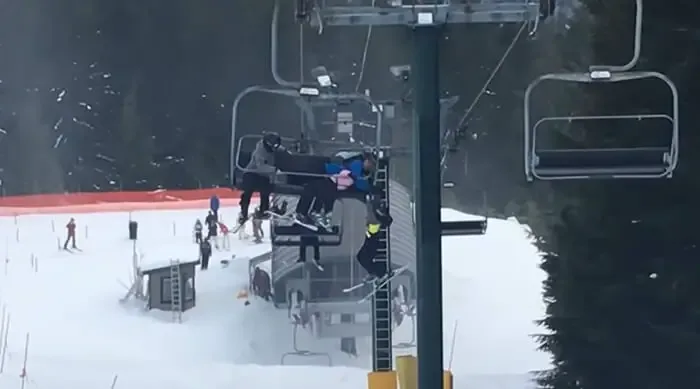 According to bystanders, the situation went downhill quickly after the boy boarded the ski lift. His dad held on tightly as the boy began to slip out of the seat.