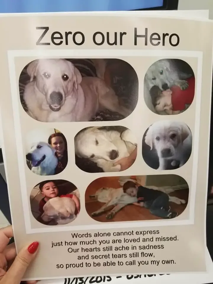Zero was put to sleep after he had protected his family from a senseless act committed by a young man.