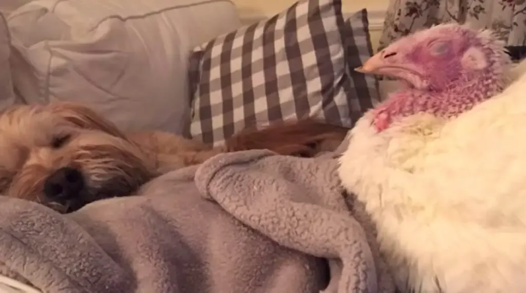 Minnow, a dog, is best friends with a rescued turkey named Blossom.