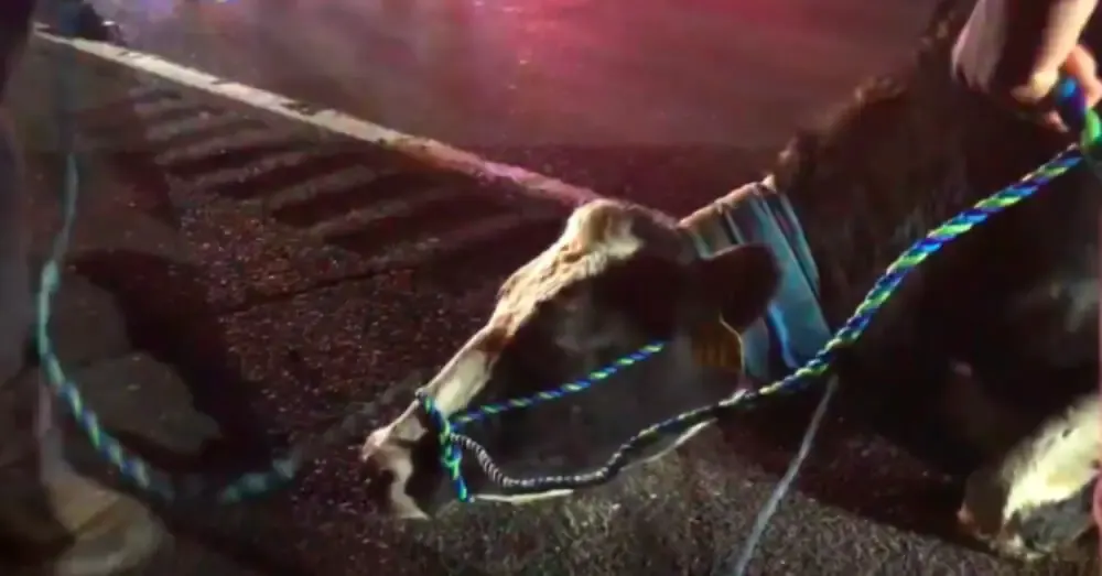 While this amazing story could have had a sad ending, thankfully the police were called. They spent over an hour chasing the increasingly distressed cow.