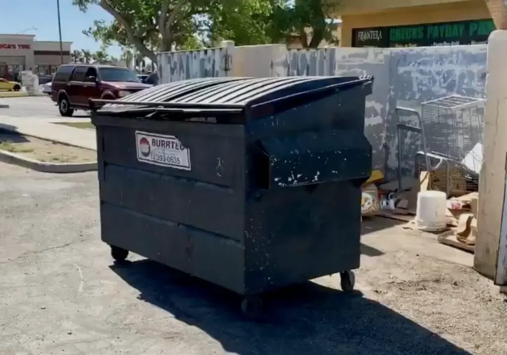 The dumpster was at a jewelry store close to where the group of seven puppies were located.