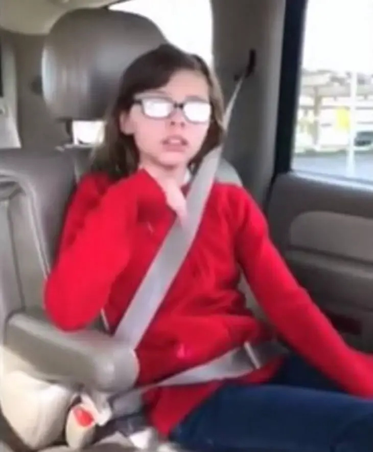 When the foster father tells Shailee that they are going to court for the adoption, she sits up straight and grabs tightly onto the arm rests of her leather seat as she asks if they’re being serious.