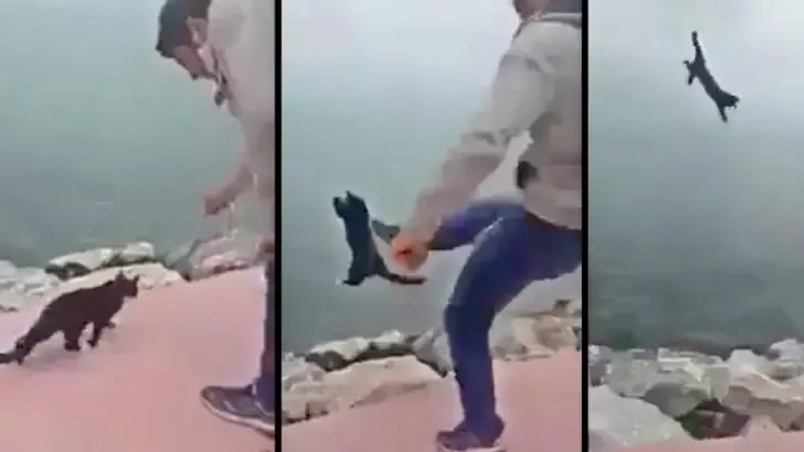 Cruel Man Coaxed Kitty To Come Closer To Him Then Kicked Him Like Football Into The Sea