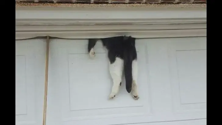 This Cat Will Be More Mindful Where She Sleeps After Sleeping On The Garage Door