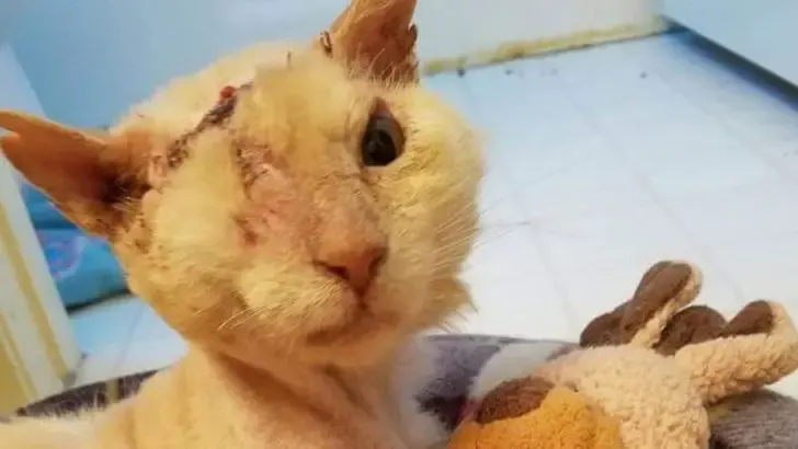 Poor Cat Who Was Doused In Acid Lost One Eye, But Continues To Love And Trust