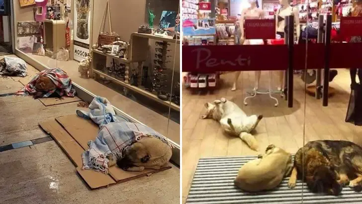 Stray Dogs Sleep In Front Of The Mall — Then Humans Did The Nicest Things