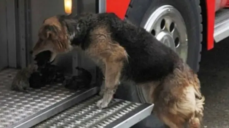 Firefighters See A Dog Running Out Of A Burning House. When She Runs Back In They Realize Why…
