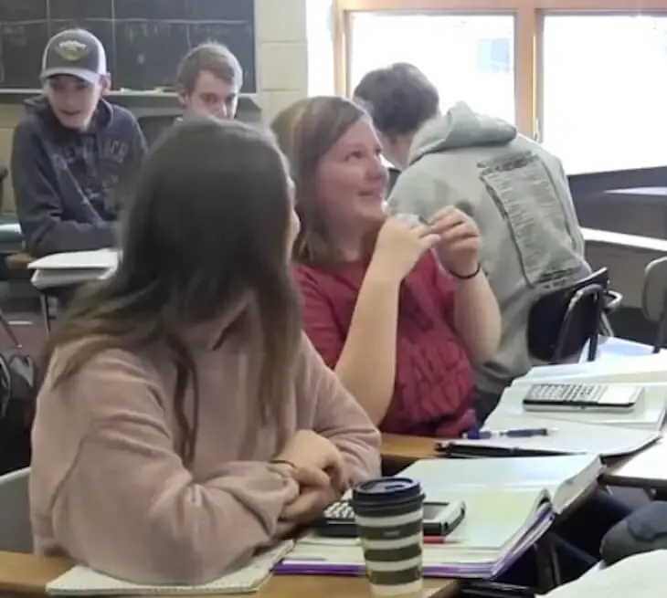 As she and her classmates sat at their desks waiting to hear the standard morning announcements, her heart stopped as a surprise voice came over the speakers.